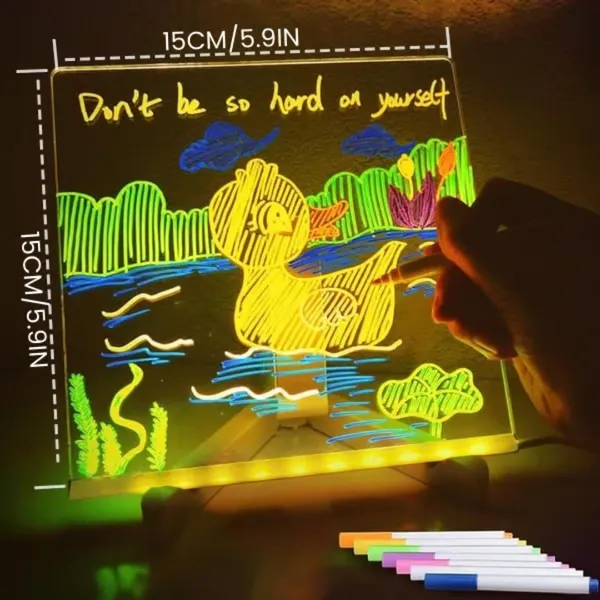 This clear acrylic dry erase board with built-in LED light is the perfect balance of fun and learning. Its cute, lightweight design appeals to kids of all ages, encouraging them to unleash their creativity. With 7 vibrant highlighters, children can draw, write, and explore their imagination—no screens required! It's more than just a toy; it's a tool that stimulates creativity, focus, and critical thinking while keeping your kids engaged in healthy, screen-free play.